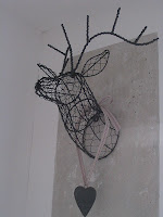 Il y a des rennes dans mon bureau. Je l'a trouve ce weekend et je trouve qu'elle est beau sur le mur de béton.... aussi les petites en zinc sont jolie dans l'atmosphère blanc. Le petit arbre et l'étiquette j'ai gagner chez elle