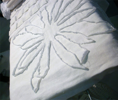 Heel Wit showed their collection in a laundry where the duvet covers were presented hanging out of the washing machines and the accessories in a closet made of two stairs. White stairs of course says Mirjam Boon, owner of web shop Heel Wit where she sells a collection of white products, from natural linens to porcelain. Have a look at the shop there is also an English version and Heel Wit ships world wide!